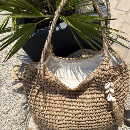 Setzen Sie ein modisches Statement mit dieser handgefertigten Schultertasche aus natürlichen Palmblattfasern. Die leichte elegante Form, verleihen dieser Tasche einen einzigartigen Look mit sommerlichem Flair. Ideal für einen entspannten Bummel in der Stadt oder einen Kaffee im Lieblingscafé