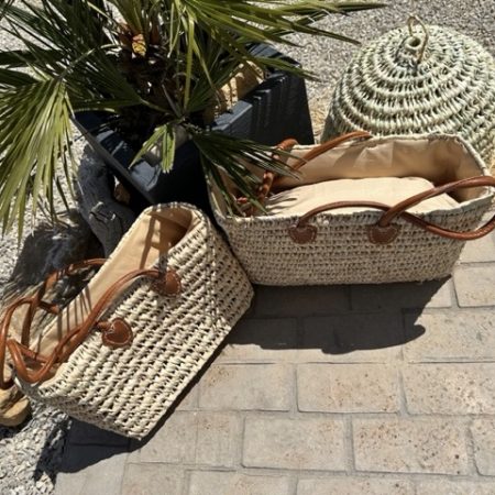 Liebevoll von Hand gefertigte Korbwaren. In einem von wenigen noch verbliebenden Handwerkskunstbetrieben in der Inselmitte. Daher können leichte Abweichungen in Farbe, Nieten oder keine Nieten oder Form der einzelnen Taschen vorkommen sowie die Dicke der Lederriemen und Beschaffenheit, da Handarbeit.
