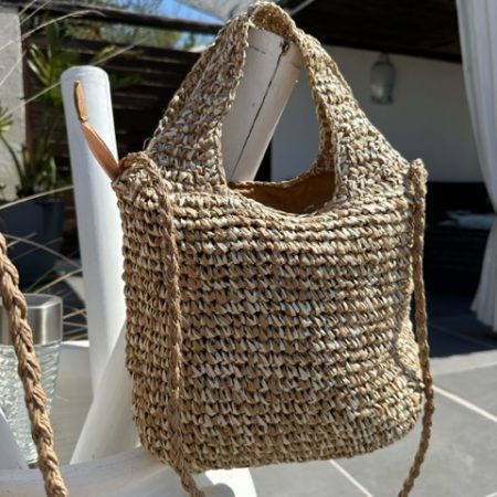 🛍 Schöne Korbtasche aus Wasserhyazinthen und Lederhenkel in drei Größen: