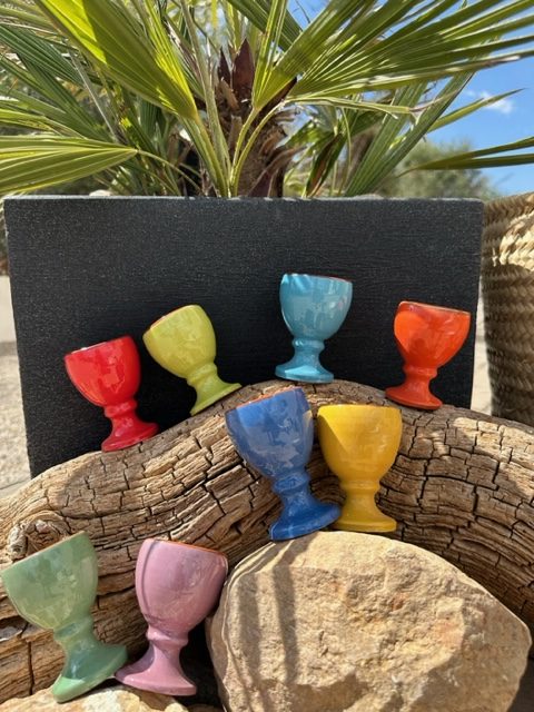 Tolle Keramik Eierbecher in einem mediterranen Design und wunderschönen leuchtenden Farben