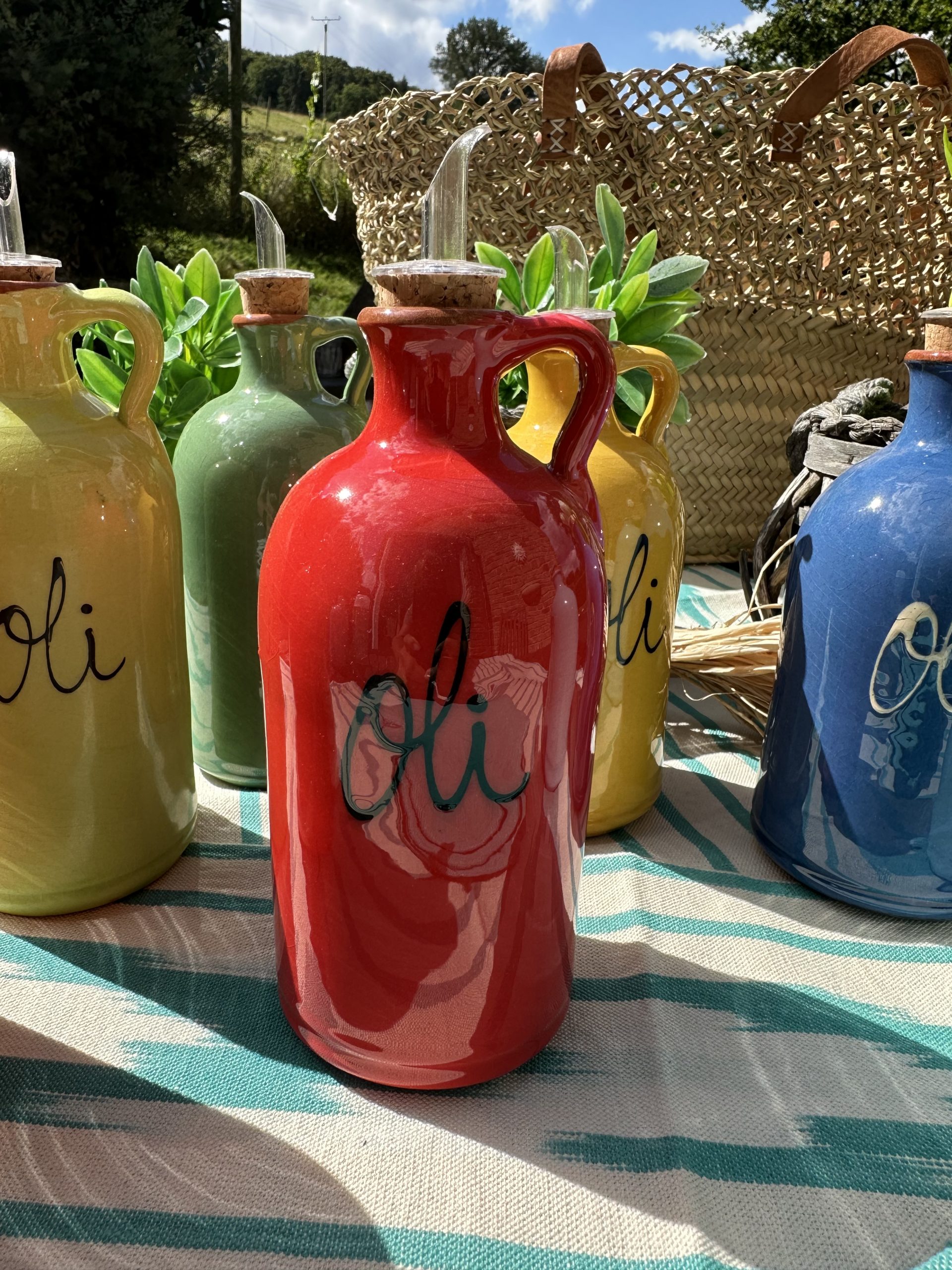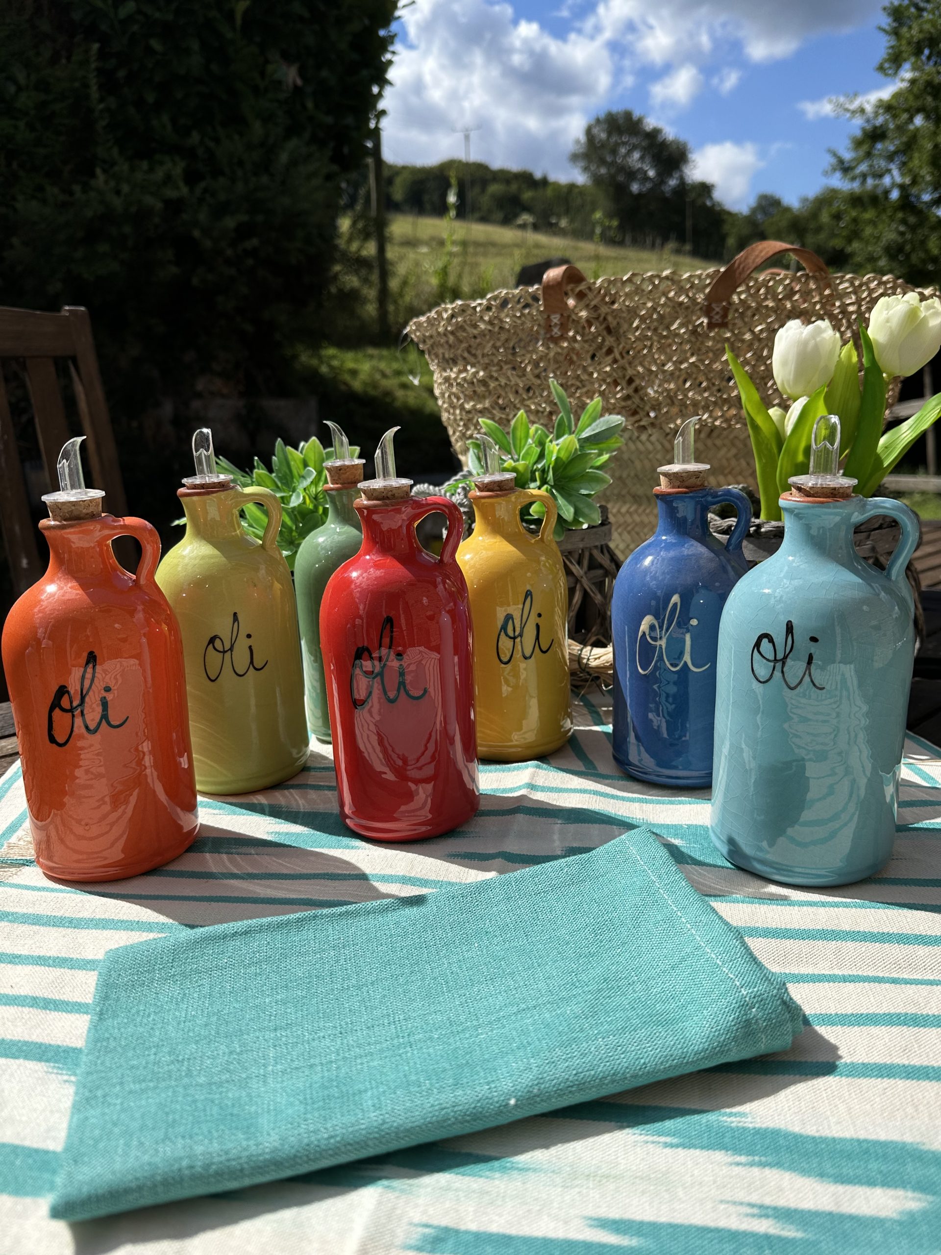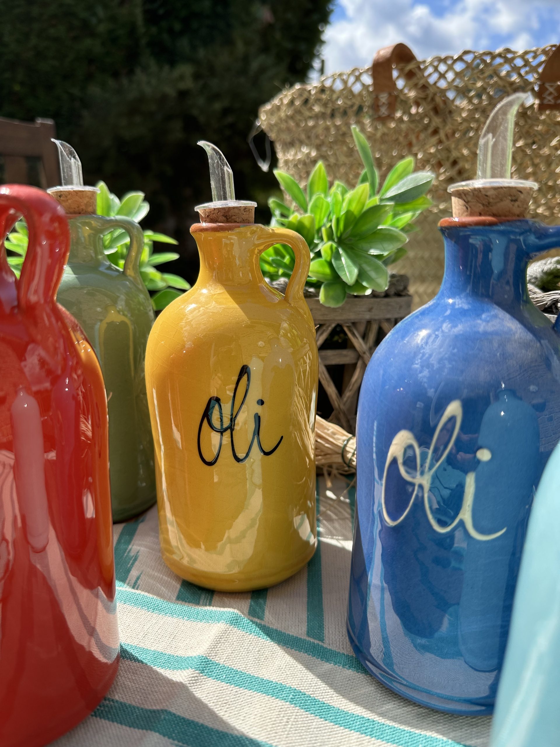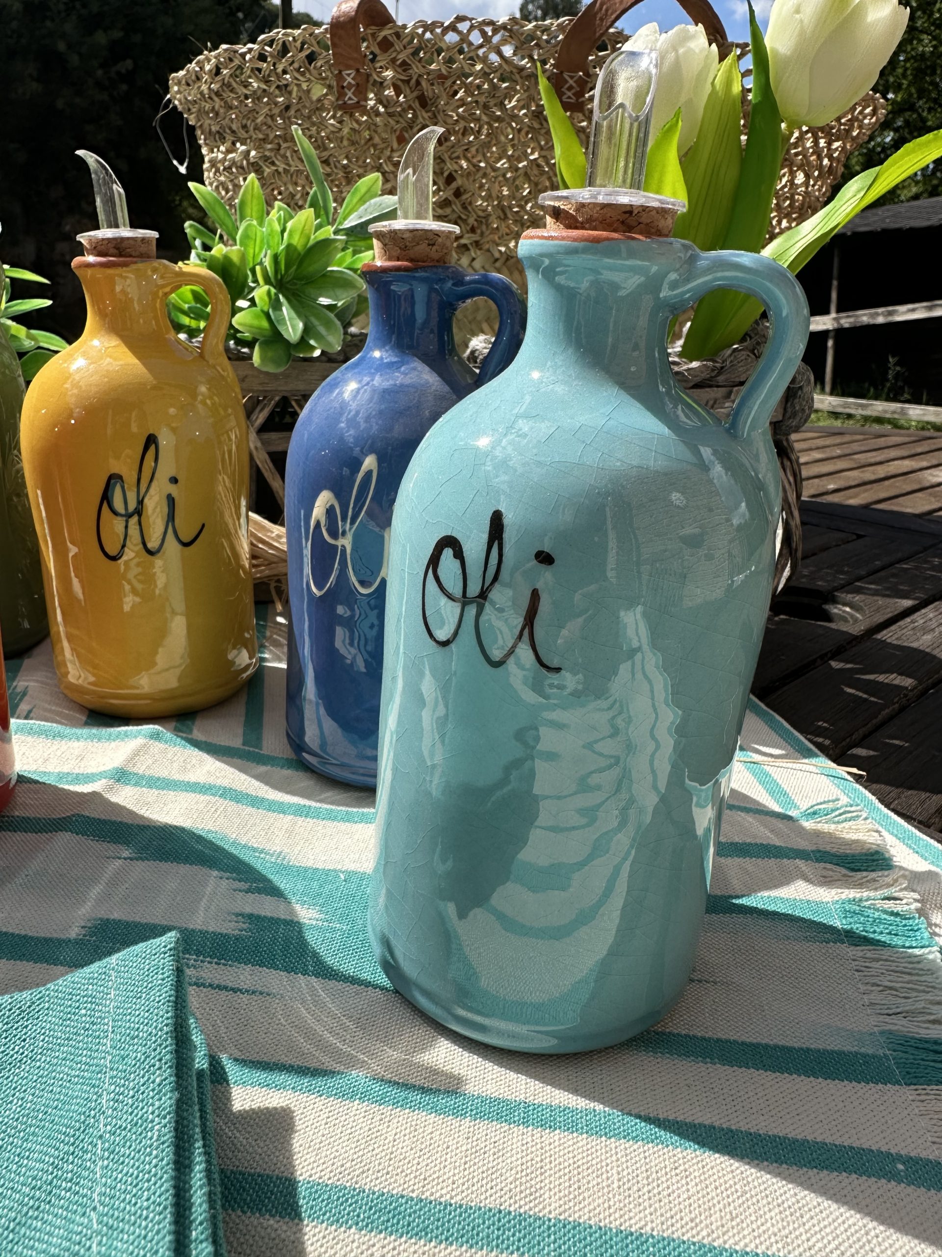 Wunderschöne Handgefertigte und lasierte Olivenöl Flaschen ca.400ml in tollen Farben: