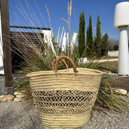 Große Korb-Tasche aus Mallorca In Handarbeit stabil und robust, aus Palmblatt geflochten, mit langen, Leder Schulterriemen aus Echt-Leder. Ideal für Strand und Schwimmbad, aber auch als Shopper geeignet. Die in 100% Handarbeit hergestellte Tasche, wird aus einem Palmblatt geflochten – Da es sich um ein in 100% Handarbeit aus Naturmaterialien hergestelltes und geflochtenes Produkt handelt, kann es zu Abweichungen in Form, Farbe und Größe kommen. Dies ist kein Mangel sondern durch die natürlichen Materialien bedingt und ein Zeichen der Handarbeit.