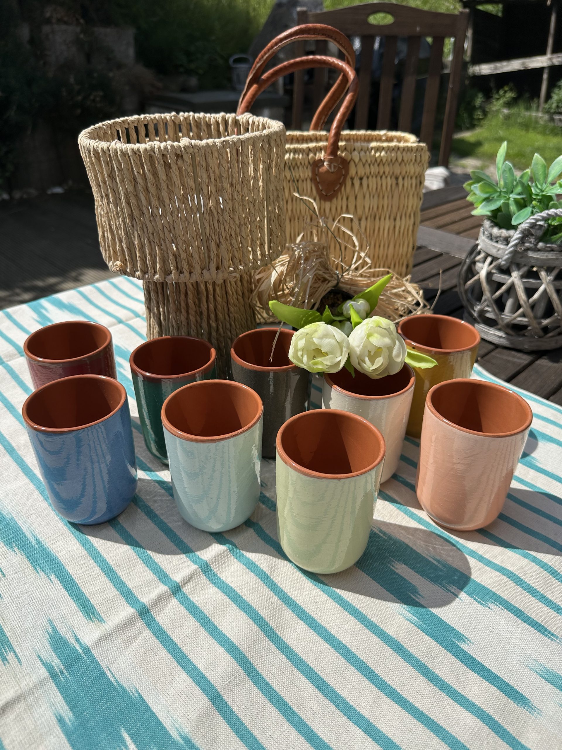 Tolle Keramik Becher in einem mediterranen Design und wunderschönen Pastell Farben